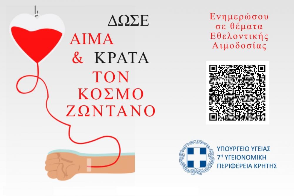 The 7th Health District of Crete, on the occasion of this year's celebration aims to inform and attract more conscious volunteer blood donors, the biggest challenge for the blood donation system of our country, by promoting the humanitarian dimension and eliminating any prejudice, fear. Thus, it proceeded to the creation of a digital QR icon (Quick Response Code).